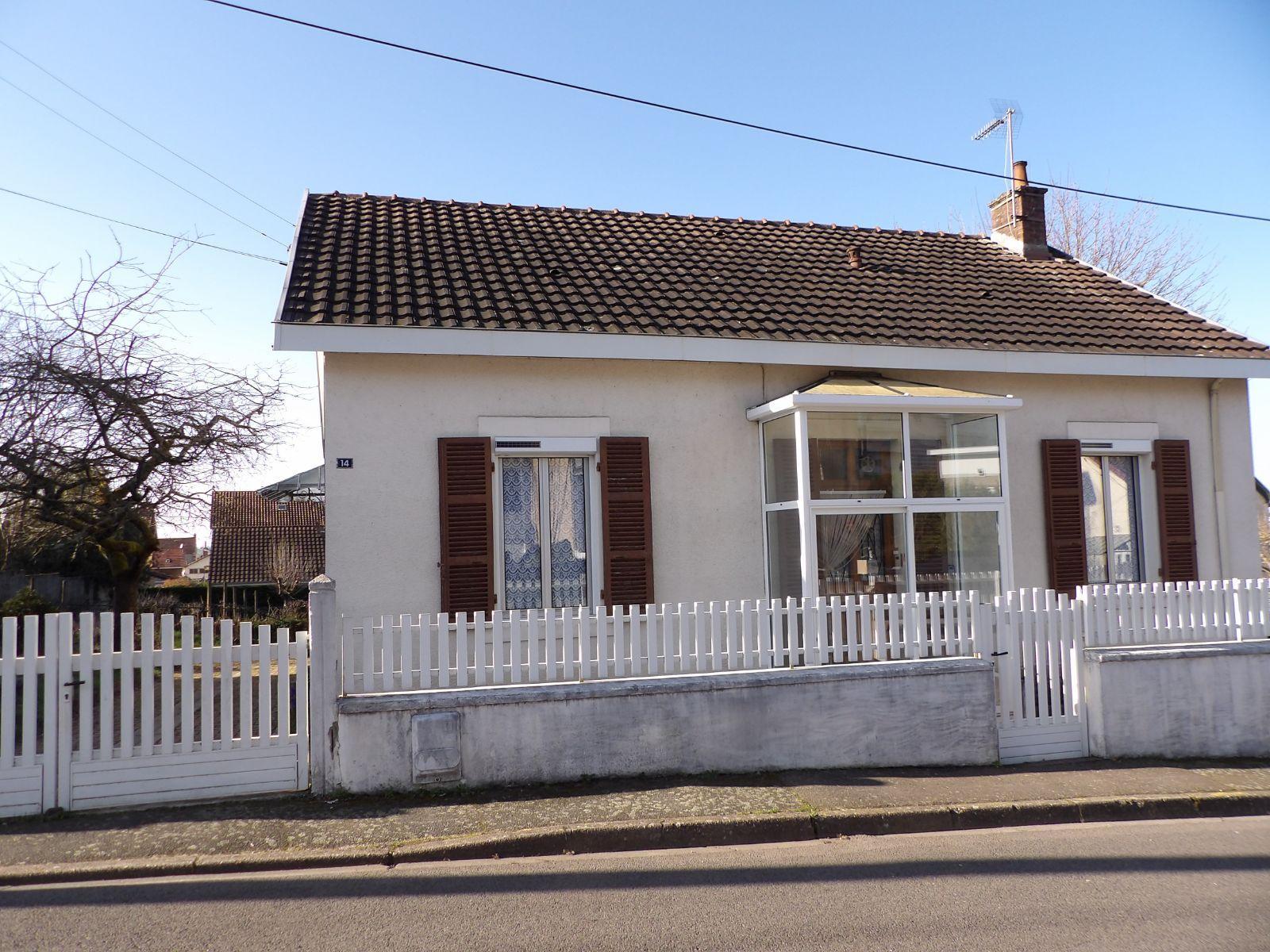 Proche centre ville, maison individuelle sur caves comprenant véranda aluminium, cuisine, séjour, deux chambres, bureau, salle d'eau-WC, combles aménageables par escalier intérieur, chauffage gaz de ville (chaudière FRISQUET récente), garage double, atelier, cour pavée, menuiseries en partie en aluminium double vitrage, volets roulants électriques, jardin d'une contenance de 879 m².